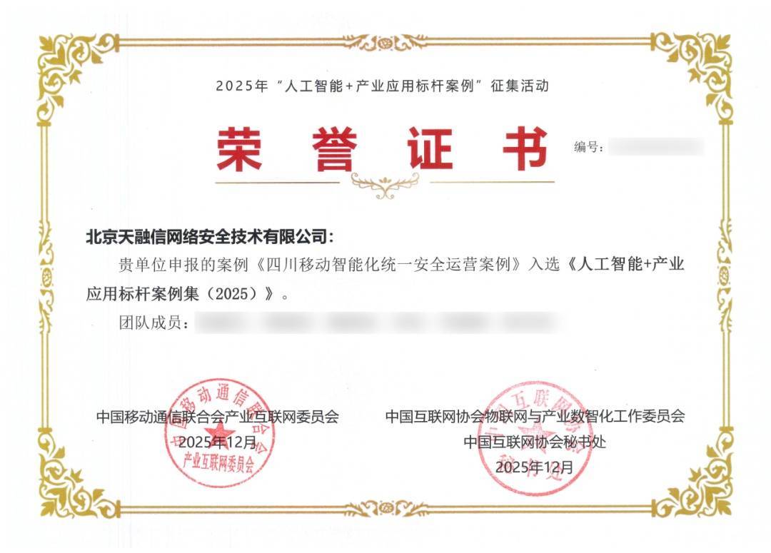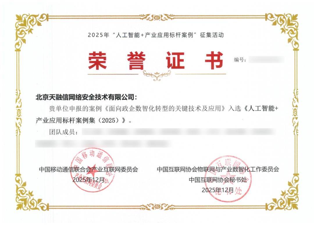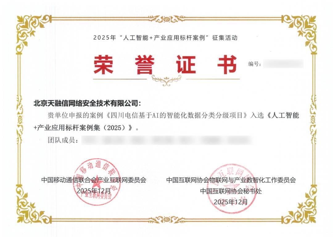 近日,由中国互联网协会、中国移动通讯纠合会纠合组织的“东说念主工智能+产业哄骗标杆案例”搜集活动限度负责揭晓。天融信凭借在东说念主工智能与网罗安全会通范畴的特别试验荣获“东说念主工智能+标杆单元”名称,三大中枢哄骗案例得胜入编《东说念主工智能+产业哄骗标杆案例集(2025)》。